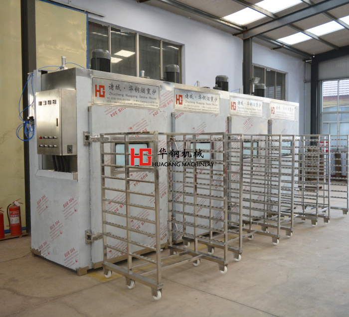 臘肉煙熏爐直銷-臘肉機(jī)器一提起臘肉,我們肯定不陌生,有很多人會說不就是豬肉經(jīng)過曬干煙熏后的加工出來的食品嘛,對了,從理論上說可以這么理解,看似簡單的臘肉如果說加工不好的話,臘肉機(jī)器那吃起來的口感是大有不同的,有些人喜歡自己用柴火點(diǎn)上火上面加一個架子,把臘肉用繩子栓起來掛在桿上,用扇子一邊閃火一遍熏,可想而知,那柴火揮發(fā)出來的煙灰會隨著風(fēng)沾腐到食品上,因為我們都知道,木材產(chǎn)生的煙灰里面含有致癌物,長期食用會對身體造成危害,那么,很多人又特別喜歡吃,又擔(dān)心吃了對身體不好,那怎么辦呢。哈哈,不用擔(dān)心,為了大家身體健康以及加工效率上,我們經(jīng)過準(zhǔn)確的研究,計算合理設(shè)計出了一種能夠提高工作效率,過濾致癌物,提高產(chǎn)品品質(zhì)的煙熏爐。