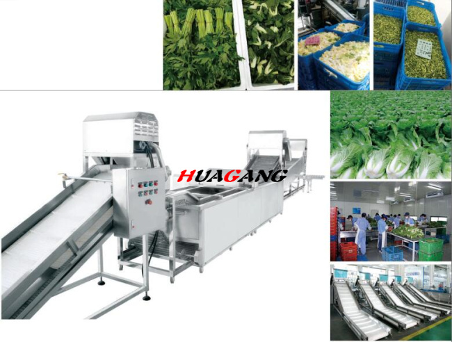 操作流程:蔬菜整理去雜→切菜→蔬菜提升→一道清洗→毛刷輥去毛去雜→凈水噴淋清洗→二道清洗→毛刷輥二次去毛去雜→凈水噴淋清洗→震動脫水→稱重→打包→入庫。