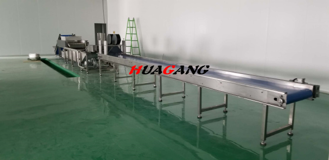 蔬菜清洗機(jī)的工作原理 通過高壓旋氣泵使水發(fā)生翻滾、“沸騰”,使物料表面的塵土、泥沙迅速脫離主體,通過不銹鋼網(wǎng)帶,將清洗后的物料輸入到下道工序,在出料端上部裝有多個(gè)扇形噴嘴,對(duì)蔬菜進(jìn)行二次清洗,達(dá)到良好的清洗效果。