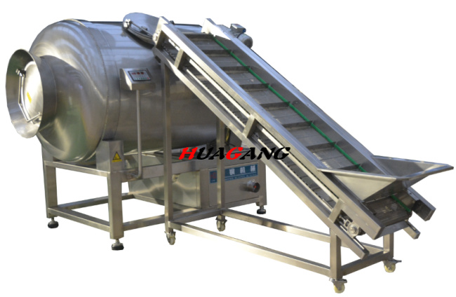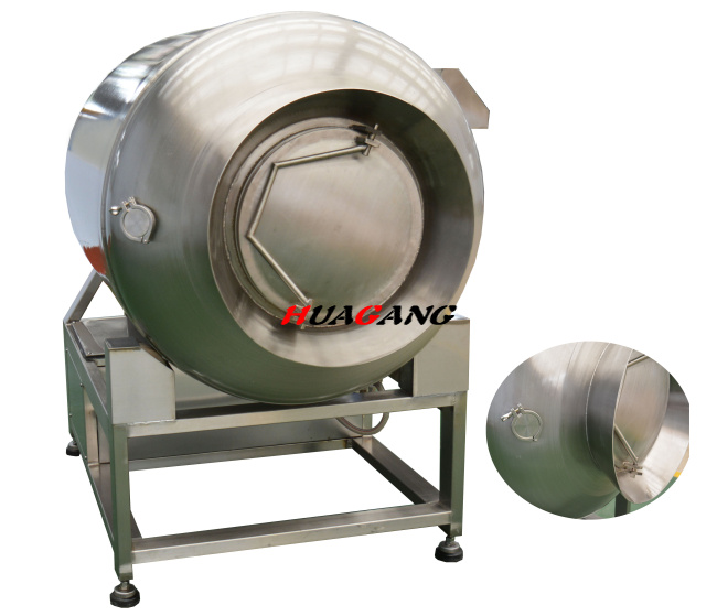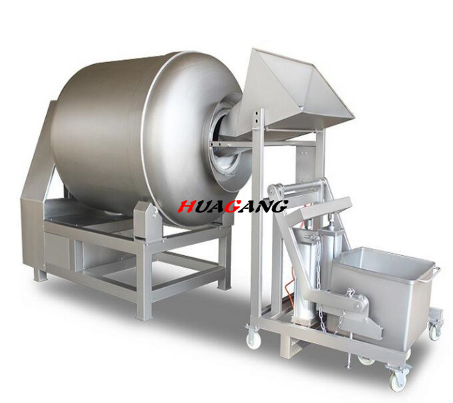 諸城華鋼機(jī)械生產(chǎn)大小型號真空滾揉機(jī), 在肉制品中采用真空滾揉的優(yōu)點(diǎn)在于:通過抽真空,能排出肉品原料及其滲出物間的空氣,這樣在以后的熱加工中不致產(chǎn)生熱膨脹現(xiàn)象破壞產(chǎn)品的結(jié)構(gòu)。真空滾揉還有助于改善腌肉制品的外觀顏色。針對現(xiàn)在人工貴,節(jié)省勞動力這個(gè)原則,我們把滾揉機(jī)裝料大概推薦幾款裝料方式。