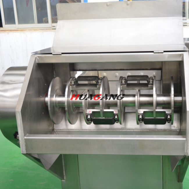 整機(jī)采用SUS304不銹鋼材質(zhì),每塊2.5-25kg的 -4°C到-18°C的凍肉,可快速直接切成塊或片狀,是斬拌機(jī)和絞肉機(jī)的前道工序。