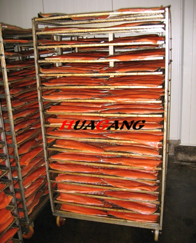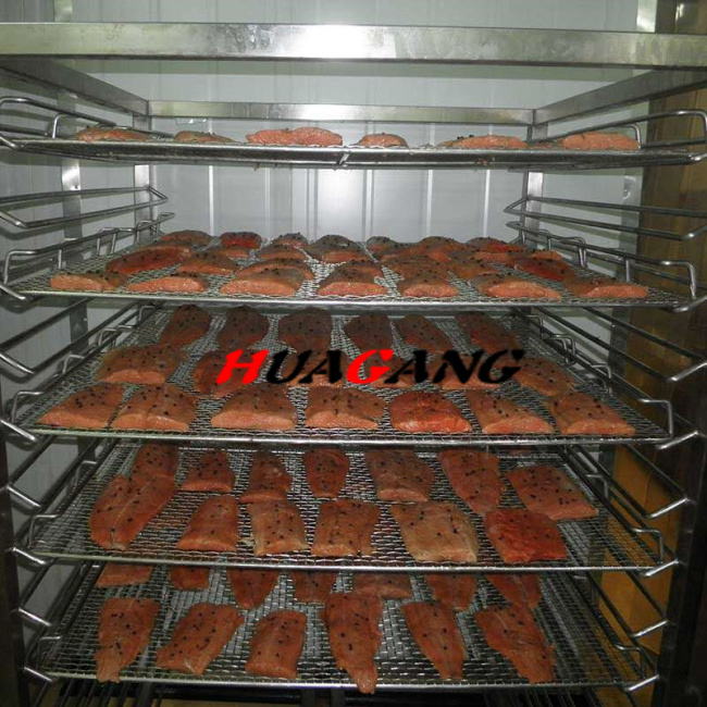煙熏根據(jù)處理溫度的高低可將煙熏分為冷熏、溫熏、熱熏,這三者沒(méi)有明顯的界線,各自劃分的溫度區(qū)域也不盡相同。把0~30℃定為冷熏,30~50℃為溫熏,50~80℃為熱熏,80℃以上的稱為烘熏。