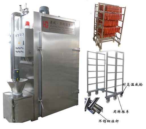分類二:從加熱源上可分為蒸汽加熱和電加熱兩種。采用蒸汽加熱,一般適用有鍋爐的用戶或者配置蒸汽發(fā)生器。電加熱就是用電加熱管實現(xiàn)烘干、煙熏、上色的。