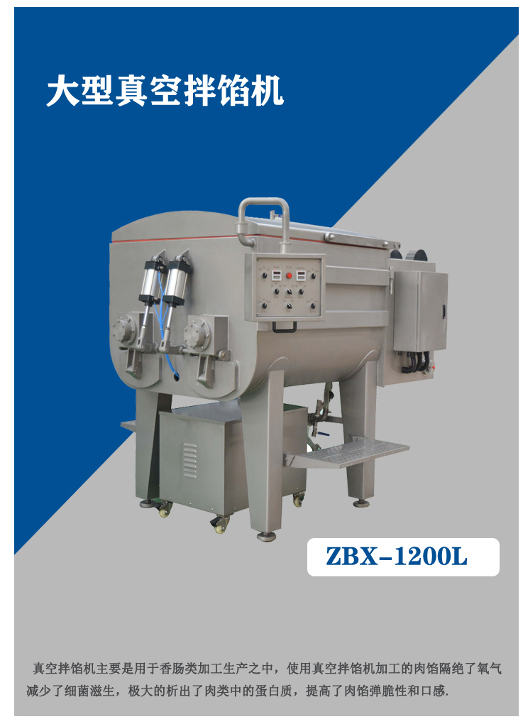 真空拌餡機(jī)的優(yōu)點(diǎn)是通過真空負(fù)壓狀態(tài),使食品餡料、肉餡等充分膨脹,無氣泡,彈性好,色澤鮮艷。并大大限度的析出蛋白質(zhì),是改善產(chǎn)品品質(zhì)的理想設(shè)備。