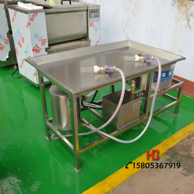 鹽水注射機(jī)手動 用于各肉類食品的腌制調(diào)味。將鹽水及輔料注入肉中充分腌漬,使肉質(zhì)嫩化、松軟、味鮮,提高肉制品的品位和出品率。