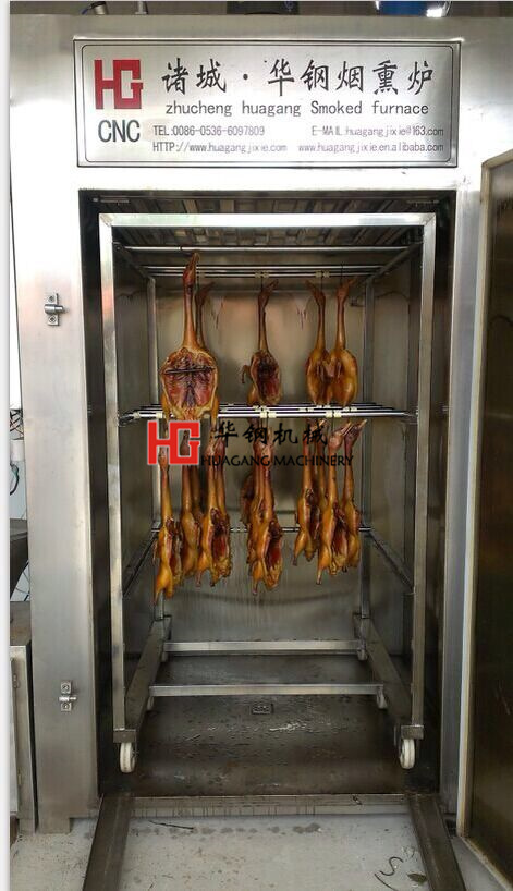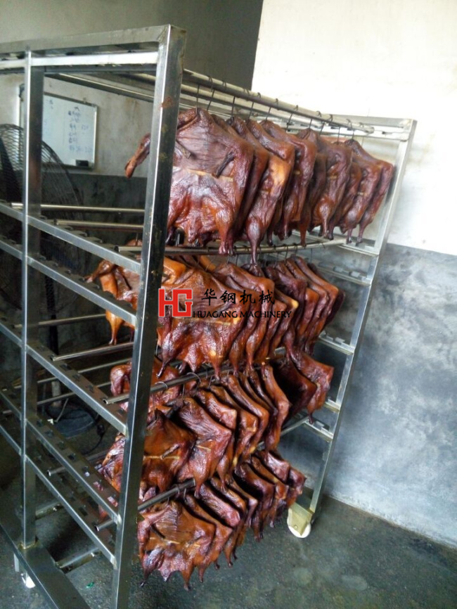 3)再放入沸水內(nèi)燙一下緊皮,搌干水,放入熏爐內(nèi);
