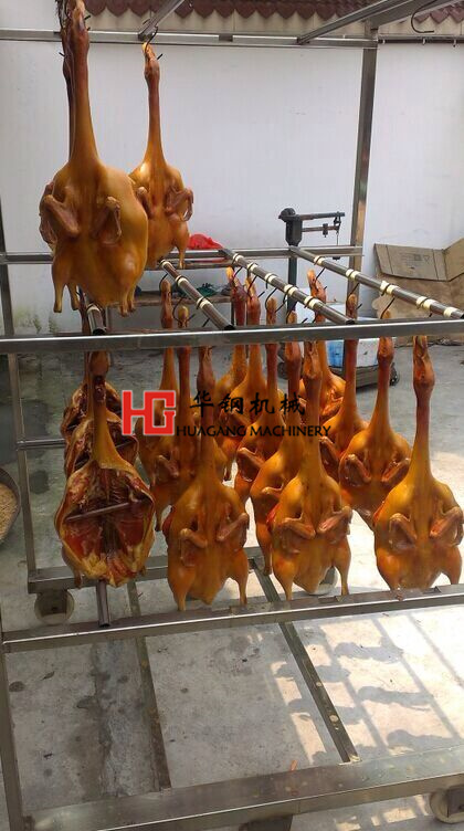 2.將鴨入熏爐內(nèi),以樟樹葉、花茶葉拌稻草為料,待鴨皮熏呈黃色時(shí)取出.