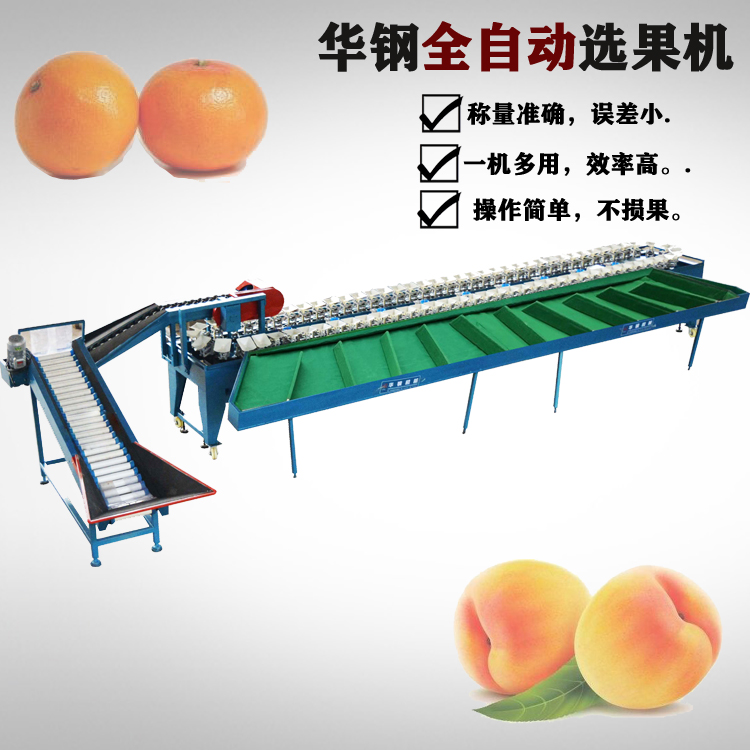 直式選果機(jī)(大果盤(pán)) 采用天平與杠桿原理,利用盛料器重量與砝碼器所設(shè)定秤量,以游動(dòng)時(shí)的移位與測(cè)量達(dá)到選擇重量的分等分級(jí)。在全自動(dòng)的傳送中,快速正確的對(duì)各種需要分級(jí)的果蔬稱(chēng)重分選,例如火龍果、芒果,南瓜等較大較圓的產(chǎn)品的分級(jí)。不但秤量確,而且具有不傷果實(shí),效率高,易操作,使用范圍廣等特點(diǎn),更能提升果品品質(zhì),增強(qiáng)果品市場(chǎng)競(jìng)爭(zhēng)力,是農(nóng)產(chǎn)品分級(jí)制度的理想設(shè)備.