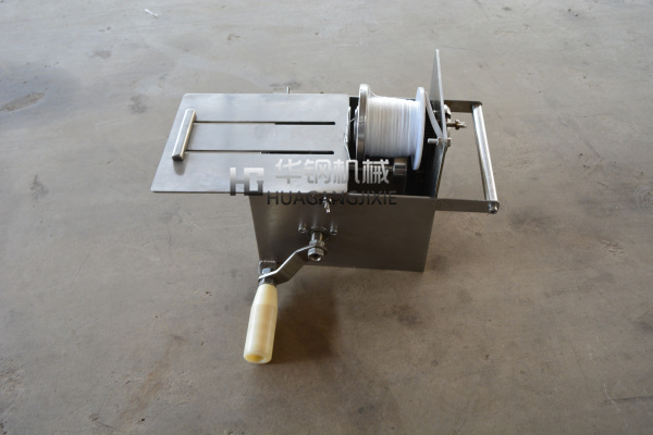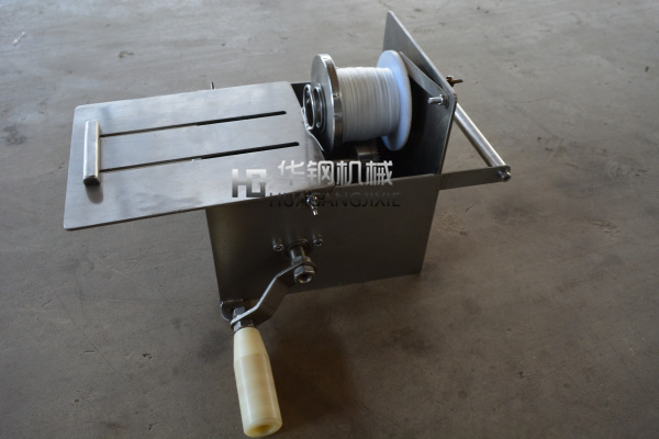 手搖式扎線機(jī)是香腸、烤腸小型加工生產(chǎn)及代加工生產(chǎn)行業(yè)中的一種設(shè)備,它可以有效的提高小型加工行業(yè)的出品率,同時又節(jié)省了成本,少去了不少大型設(shè)備所帶來的一些不必要的麻煩。