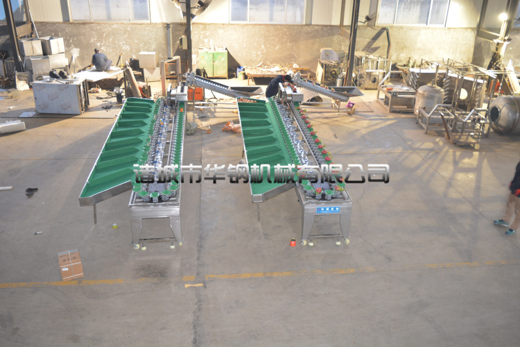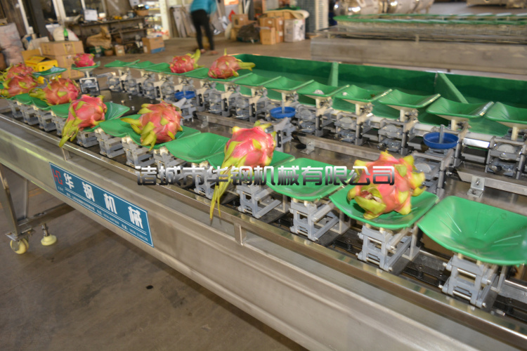 采用天平與杠桿原理,利用盛料器重量與砝碼器所設(shè)定秤量,以游動時的移位與測量達(dá)到選擇重量的分等分級。在全自動的傳送中,快速正確的對各種需要分級的果蔬稱重分選,例如火龍果、梨、蘋果、芒果、桃、柑橘、沙糖桔、獼猴桃、西紅柿、馬鈴薯、地瓜、李子、柿子、洋蔥等,產(chǎn)生準(zhǔn)確的分級。不但秤量準(zhǔn)準(zhǔn)確,而且具有不傷果實(shí),效率高,易操作,使用范圍廣等特點(diǎn),更能提升果品品質(zhì),增強(qiáng)果品市場競爭力,是農(nóng)產(chǎn)品分級制度的機(jī)器設(shè)備。