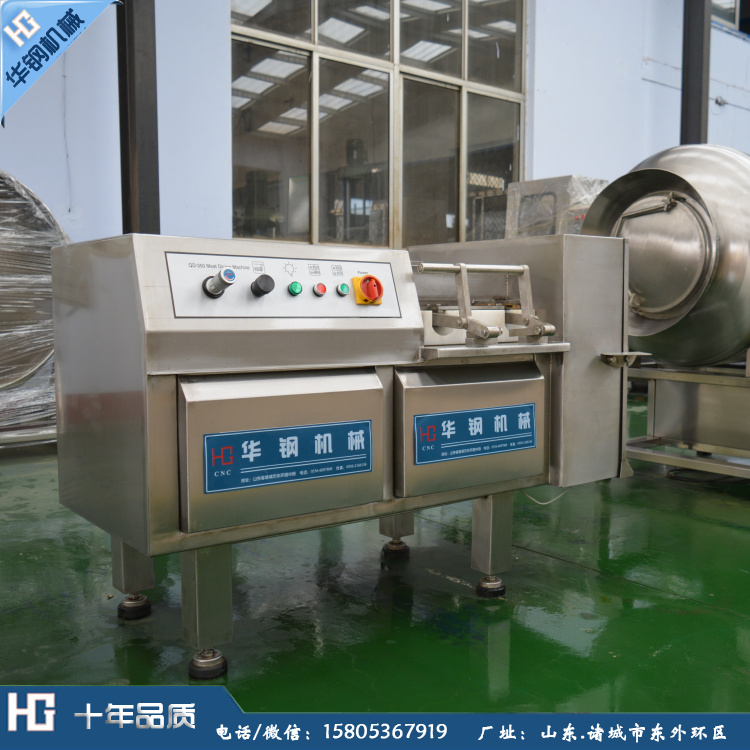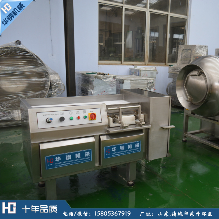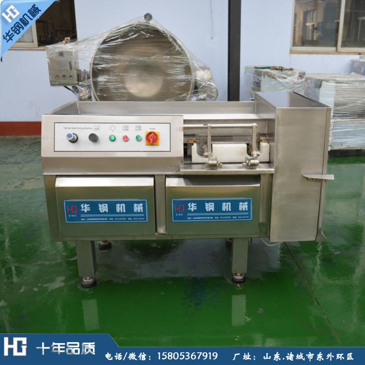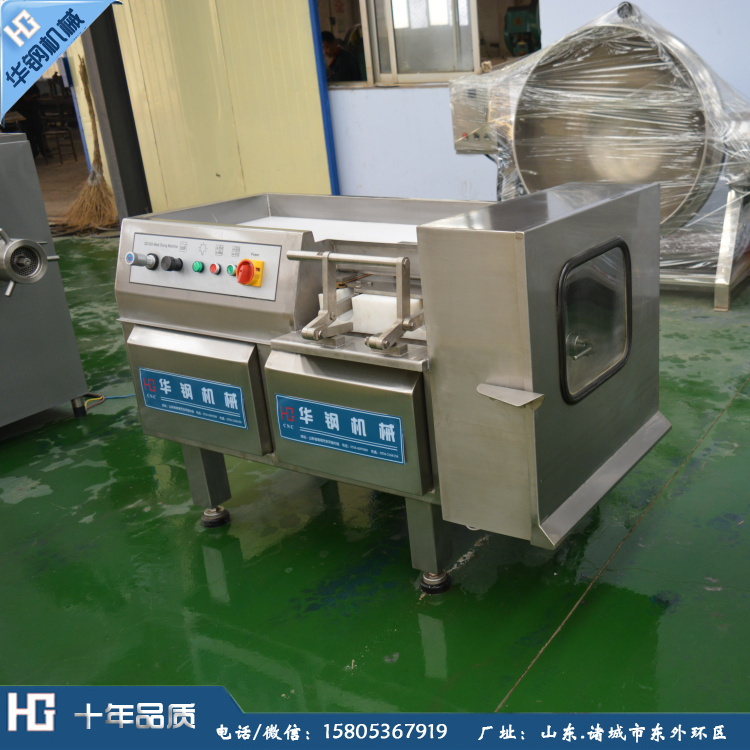 本機整體采用不銹鋼材料加工制作,防護性能好,切割零件拆卸簡易,切凍肉丁機易于清洗,網(wǎng)格刀,切割厚度可通過液壓自行調(diào)整,以滿足不同厚度的需要;多功能切凍肉丁機預壓設計,保證切出肉塊的均勻。切豬肉丁機超大進料倉,設有入料產(chǎn)品鎖緊裝置,大型凍肉切丁機價格合理,特殊的液壓動力系統(tǒng)、切割更加強勁有力,特制格柵刀片、穿透性強,連續(xù)加工肉品無粘連,多功能切凍肉丁機S型斬刀切削鋒利、切凍肉丁機,截面光滑、外形漂亮,凍肉切丁機價格優(yōu)惠能將零下3-4攝示度的凍肉一次性切成肉丁。