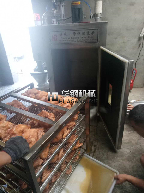 華鋼牌小型煙熏爐用于煙熏肉制品熟食,熏雞,熏鴨、熏鴿、烤腸,烤雞,熏魚,烤鴨,煙熏豆腐干臘肉以及家禽,水產(chǎn)品等等熏制產(chǎn)品,烘干,上色一次成型.煙熏色澤好,口感更佳.質(zhì)量保證,技術(shù)優(yōu)良,操作方便.經(jīng)過煙熏后食品的顏色好看,還有一種煙熏后的香味,讓人感覺香而不膩,也能達(dá)到環(huán)保效果,代替了傳統(tǒng)的煙熏爐方法,節(jié)省了工人的勞動(dòng)力,提高工作效率,更增強(qiáng)了食品的口感及彈性。主循環(huán)風(fēng)扇送風(fēng)均勻,使?fàn)t體內(nèi)溫度均勻,采用設(shè)定參數(shù)方式,通用性廣,自動(dòng)運(yùn)行中的參數(shù)可修正。