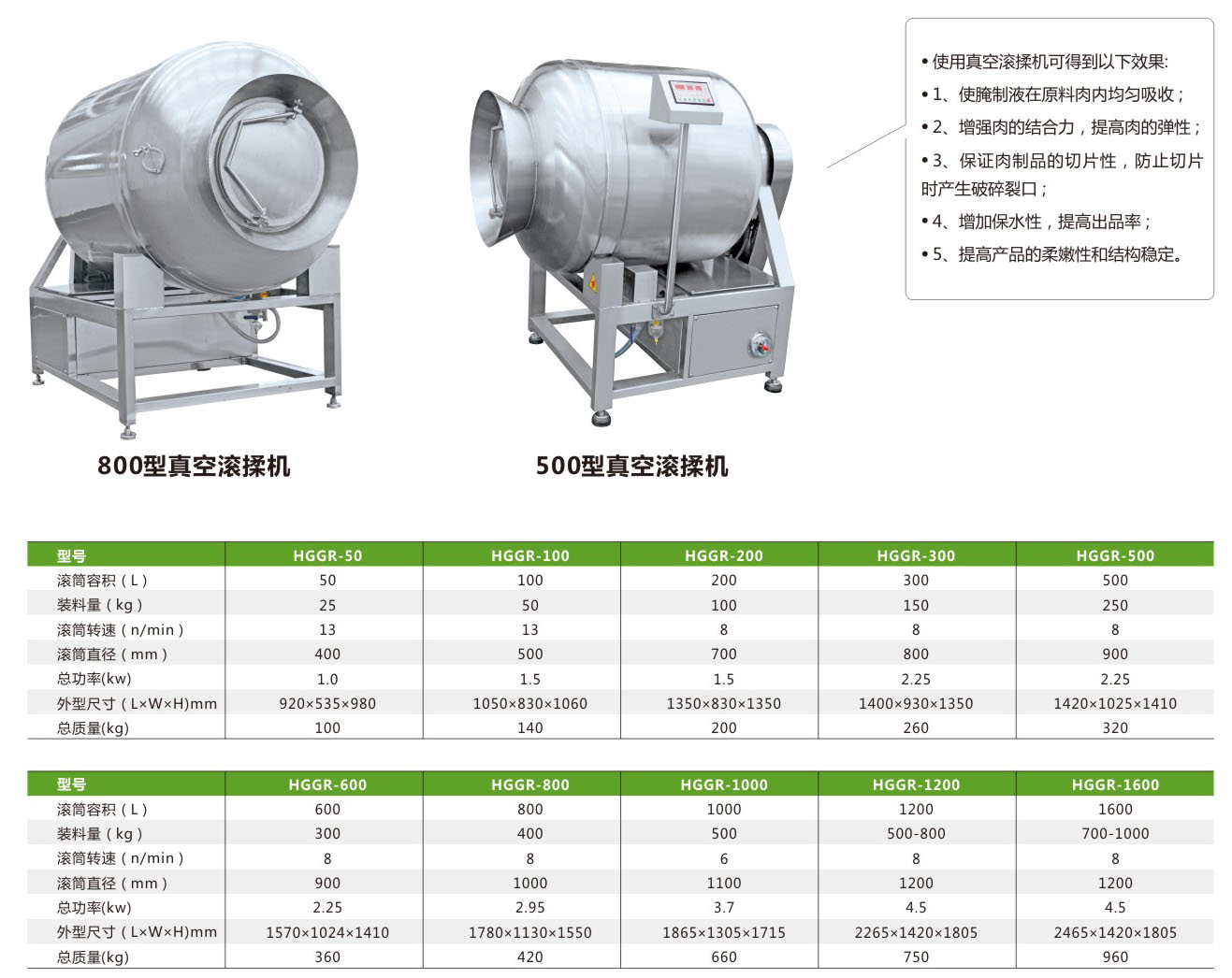 真空滾揉機(jī)也被稱為真空腌制機(jī),主要用途是讓需要加工的肉類,如牛肉,羊肉,豬肉,雞肉,鴨肉,鵝肉,魚肉等處在真空狀態(tài)內(nèi)進(jìn)行腌制處理,能夠提高調(diào)味品進(jìn)入肉品的速度,并大限度的保持肉內(nèi)的水分。
