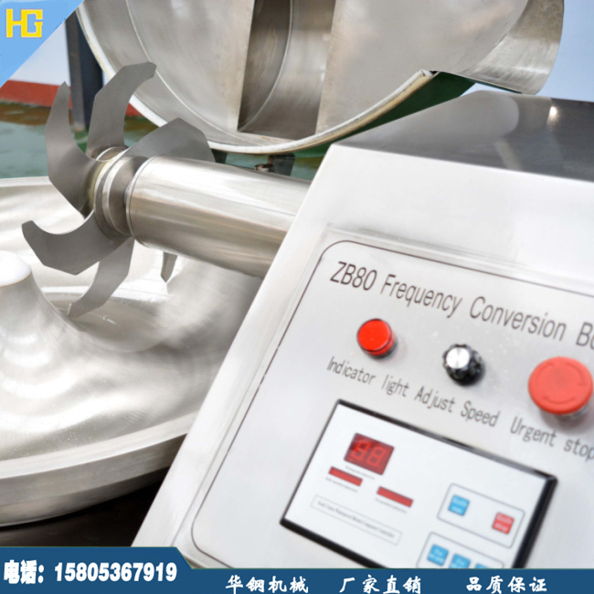 ZB系列斬拌機(jī)利用斬刀高速旋轉(zhuǎn)的斬切作用,將肉及輔料斬成肉餡或肉泥,還可以將輔料、冰片、水與肉餡或肉塊一起攪拌均勻。我公司生產(chǎn)的斬拌機(jī)刀速、鍋速、斬刀與斬鍋的間隙、斬刀材質(zhì)和斬刀刀刃硬度等設(shè)計為組合,工藝精良,確保了肉制品物料的斬切細(xì)度好、升溫程度小、斬拌時間短,提高了肉制品的乳化效果、彈性、細(xì)膩度及出品率。根據(jù)不同用戶的需要,我公司的斬拌機(jī)系列型號齊全、操作簡便、安全可靠。