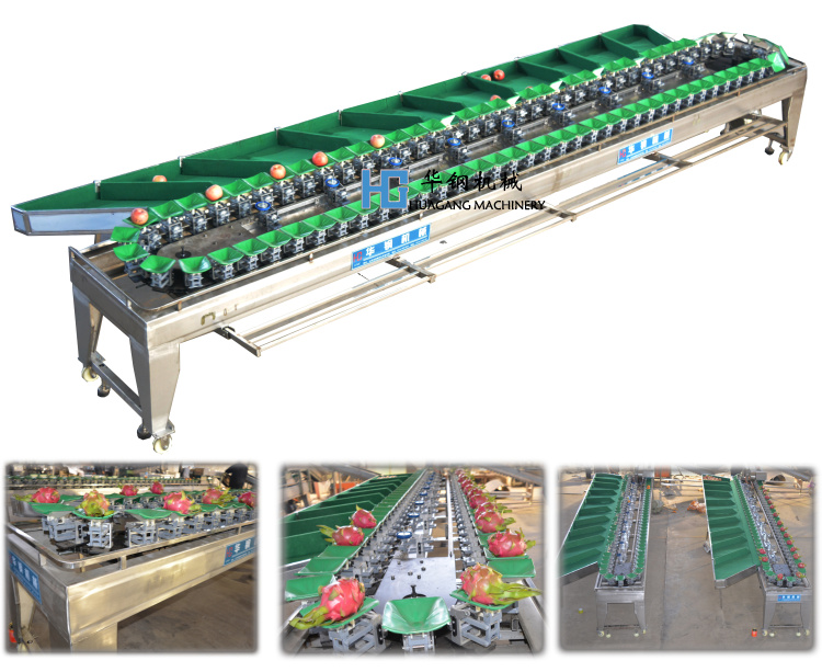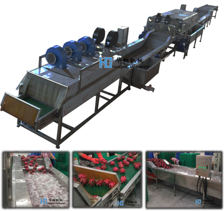 火龍果清洗之后可加上風(fēng)干機(jī)部分,風(fēng)干機(jī)是采用常溫風(fēng)對(duì)火龍果表面水份進(jìn)行吹干。可根據(jù)需求定做增加風(fēng)干機(jī),風(fēng)干后的火龍果可進(jìn)行稱(chēng)重選果,根據(jù)稱(chēng)重等級(jí)來(lái)劃分火龍果大小進(jìn)行分級(jí)裝袋,裝箱 便于入冷庫(kù)。