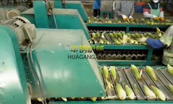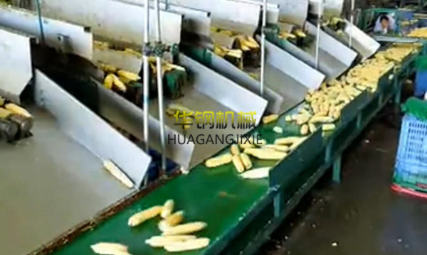 人工修整果穗,對(duì)禿尖、有蟲口的要?jiǎng)拥缎拚?,要保證切面平整。人工切段時(shí)應(yīng)下刀迅速,否則會(huì)壓碎玉米粒,影響出品率,并保證切面與隨軸垂直。否則,影響美觀。刀不快要磨,刀架松的要緊,刀片薄的要加厚。切后清洗,用流動(dòng)的清水清洗果穗,洗去玉米的花絲和污物。清洗過程要迅速,不能讓果穗長時(shí)間在水中浸泡,以免造成營養(yǎng)成分流失。洗后分級(jí),在投放于周轉(zhuǎn)筐的過程中順便進(jìn)行分級(jí)。以穗長為依據(jù)分四級(jí):12-14、14-16、16-18、18-20厘米。