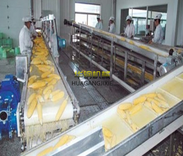 在漂燙水中加入0.1%的檸檬酸、1%的食鹽,溫度為95℃-100℃,時(shí)間為10-12分鐘。也可以用蒸汽進(jìn)行漂燙。以熱水漂燙為好。漂燙可以使玉米中的氣體排放出來而且可以破壞玉米組織中酶的活性,殺滅果穗表面的有毒生物,減少病原菌基數(shù),為提高殺菌效果奠定基礎(chǔ)。