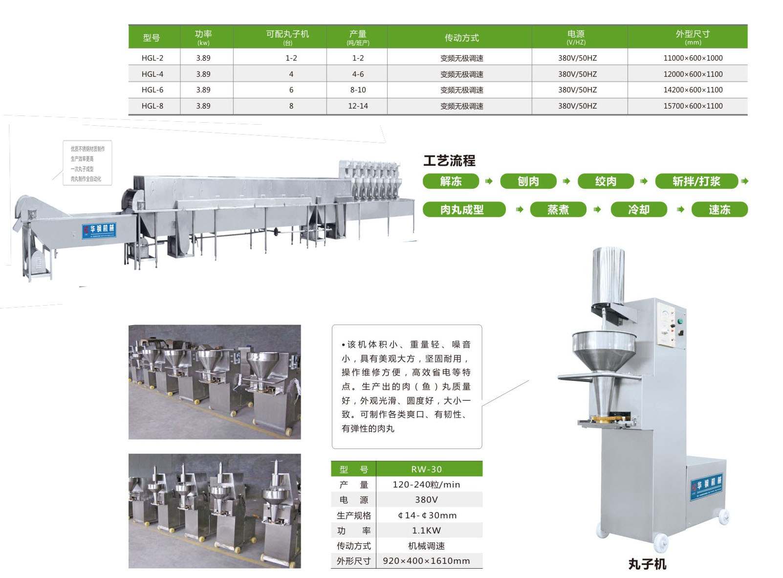 3、可生產(chǎn)肉丸、魚丸。生產(chǎn)出的肉(魚)丸質(zhì)量好,外觀光滑,圓度好,大小一致,可生產(chǎn)出多種規(guī)格的產(chǎn)品。