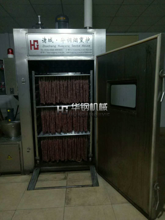 在臘肉生產(chǎn)的過(guò)程中,煙熏是十分重要的環(huán)節(jié),它對(duì)產(chǎn)品的色澤、風(fēng)味有很大的影響,而傳統(tǒng)的柴火加熱熏肉方法是無(wú)法使得臘肉熏制均勻,同時(shí)煙灰可能粘連在肉品上,影響臘肉的口感。隨著市場(chǎng)上煙熏爐的出現(xiàn),進(jìn)而解決了傳統(tǒng)熏制的弊端。市場(chǎng)上煙熏爐除了具有臘肉熏制的功能,還具有蒸煮、干燥、烘烤、排風(fēng)、清洗等功能,可謂是一機(jī)多用。