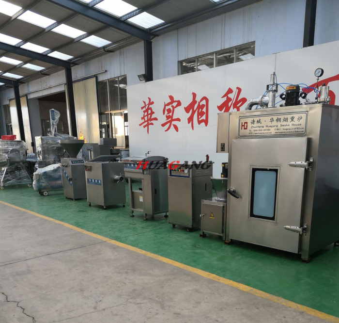 制作紅腸的設(shè)備較簡(jiǎn)單,只需絞肉機(jī)、真空拌餡機(jī)、灌腸機(jī)、冰箱、熏蒸爐即可。