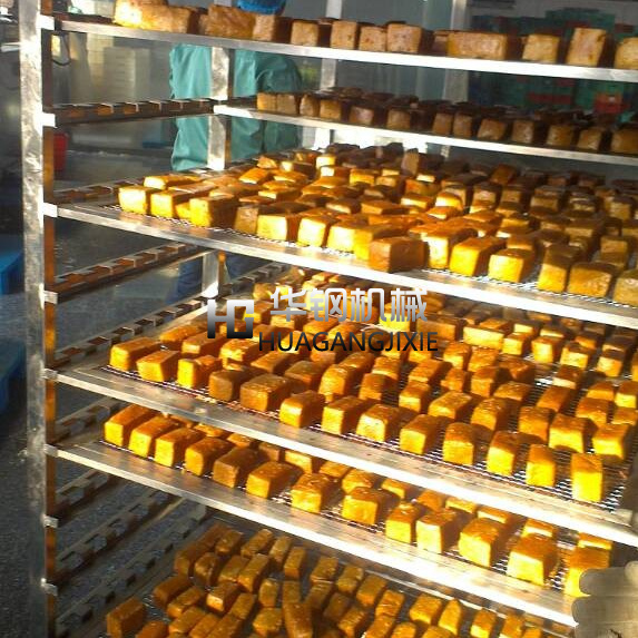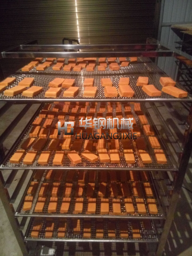 現(xiàn)在是什么費(fèi)用很貴,當(dāng)然是人工費(fèi)用很貴了, 節(jié)省人工的方法就是機(jī)器代替,但是想找到一個(gè)好的機(jī)器不是那么簡(jiǎn)單的事情,一些的功能都要實(shí)現(xiàn),我公司有專門的技術(shù)部門進(jìn)行研發(fā)設(shè)計(jì),專門為豆干進(jìn)行研發(fā)額,風(fēng)機(jī)加大,烘干工率加大,因?yàn)槎垢傻乃直容^多,這樣實(shí)現(xiàn)烘干之后在進(jìn)行煙熏,顏色就比較容易上了, 這樣之后呢就是煙熏,均勻,效果好.