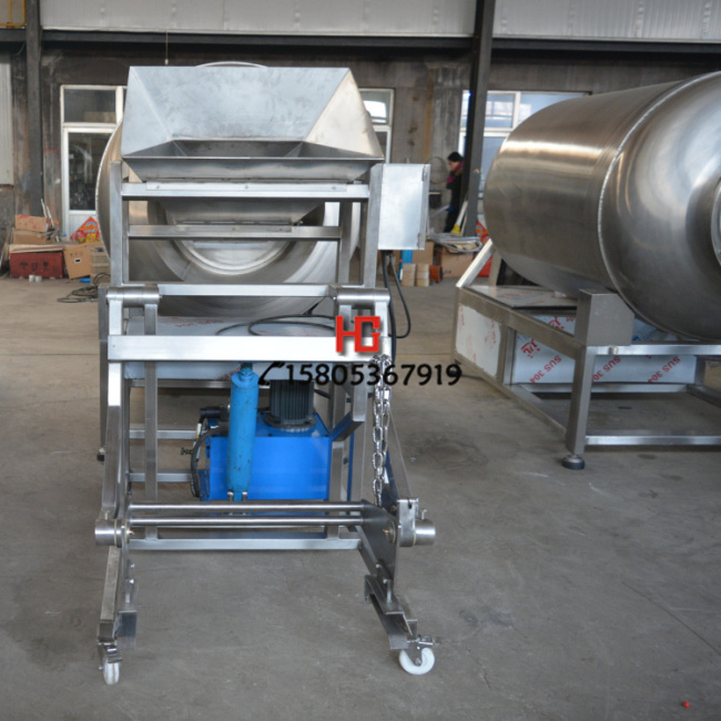 肉料提升機(jī)能平穩(wěn)地將200L標(biāo)準(zhǔn)料斗車(chē)提升到指定位置,并將料斗車(chē)內(nèi)物料傾倒在指定設(shè)備內(nèi),減輕勞動(dòng)強(qiáng)度,提高勞動(dòng)生產(chǎn)率。