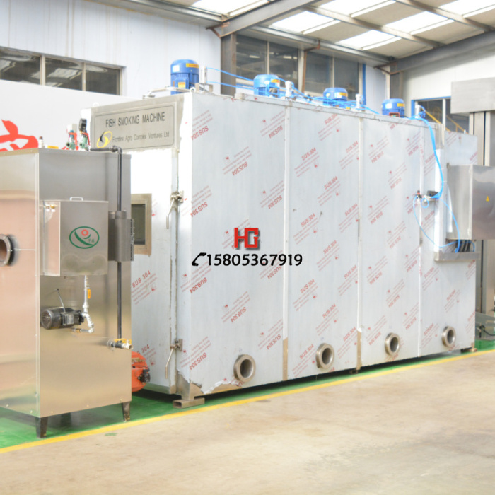 煙熏爐是各種香腸,臘肉,熏雞、烤鴨等肉產(chǎn)品,煙熏豆腐干等不可缺少的設(shè)備之一,具有蒸,烘烤、煙熏、排風等功能。根據(jù)客戶的反饋以及市場的需求,經(jīng)過多年的摸索探索研制生產(chǎn),加熱升溫裝置有蒸汽加熱或者電熱管加熱,同時集成了循環(huán)控制,發(fā)煙,烘烤干燥等系統(tǒng),煙熏的過程縮短,提高生產(chǎn)效率;并能控制煙熏料(果木,木屑,稻殼米糠,白砂糖)的量,幫助生產(chǎn)企業(yè)有效控制了成本,對產(chǎn)品進行了性能高,設(shè)備更合理的改進,使其加熱速度、烘干效果、煙熏效果都達到了理想的效果。