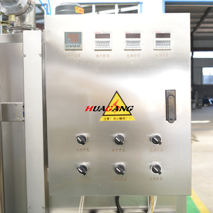 外置發(fā)煙:是在煙熏爐一側(cè)外部有一個(gè)專門的發(fā)煙箱,可以滿足客戶在生產(chǎn)中,多次打開發(fā)煙箱,來多次投放煙熏木屑,木粉,糖等煙熏料。外置發(fā)煙過程與內(nèi)置發(fā)煙相似,只是相比于內(nèi)置發(fā)煙,外置發(fā)煙具有發(fā)煙大小以及煙霧濃度能自由控制的優(yōu)勢(shì),并且煙霧通過鼓風(fēng)機(jī)的作用進(jìn)入煙道后,在通入爐體之前經(jīng)過過濾作用,使煙熏中的3、4-苯丙比的含量大大減少。