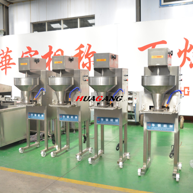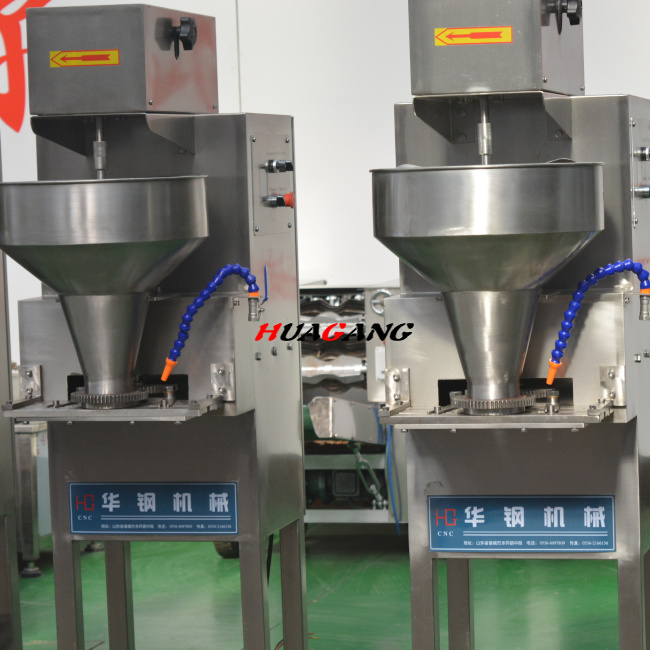 獅子頭機(jī)又名為大肉丸成型機(jī),能做直徑35mm-65mm范圍的大肉丸,成型效果好,圓度好,表皮光滑,結(jié)實(shí)有彈性,是獅子頭成型設(shè)備。采用雙速電機(jī)分別控制成型速度,可調(diào)性靈活,操作簡單。