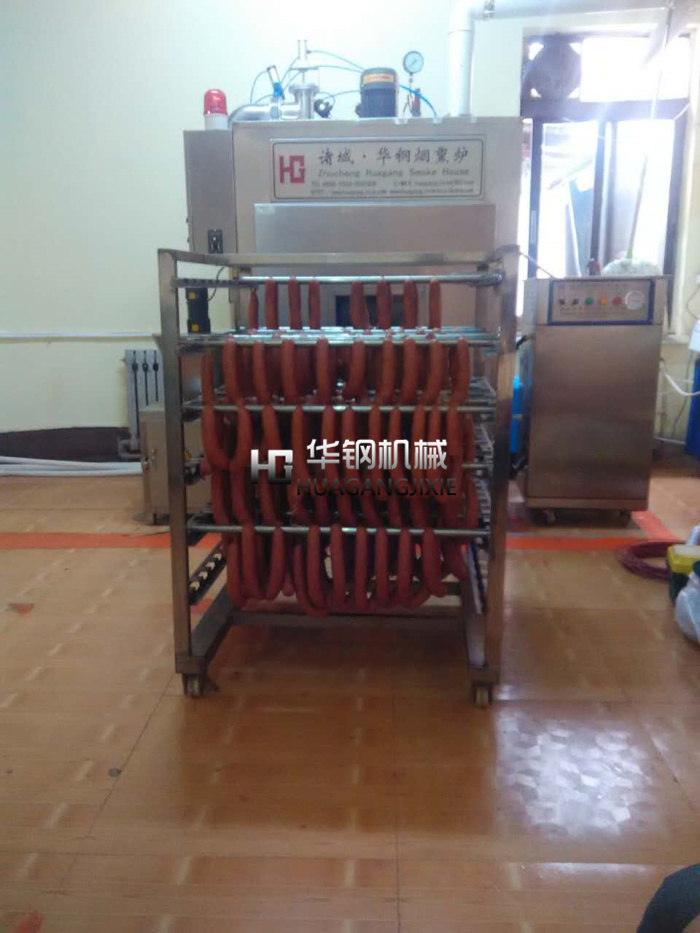 蒸煮爐是沒有去掉煙熏功能的煙熏爐,主要是用來烘干和蒸煮香腸的設(shè)備。華鋼煙熏爐具有蒸煮、干燥、烘烤、煙熏、排風(fēng)、清洗、烘干等功能.這個升溫時間快,煙熏效果好,顏色均勻。針對您產(chǎn)量的大小,有不同型號的選擇。質(zhì)量都是非常可靠的。