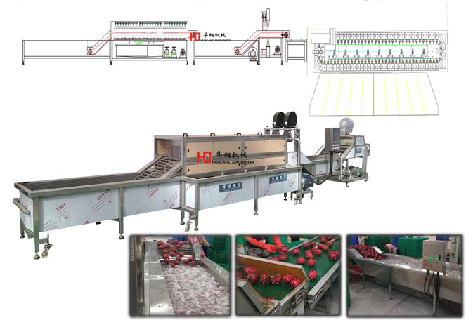 2. 火龍果清洗機(jī)效率高,占地面積小,安全可靠。