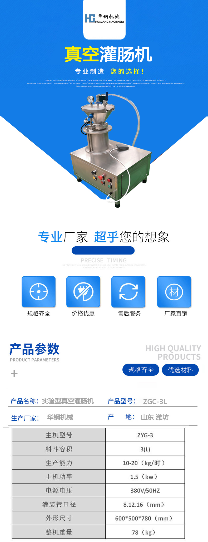 實驗室用小型真空灌腸機整機采用不銹鋼制成,外型美觀,結(jié)構(gòu)緊湊合理,密閉防水,易于清洗.用于制作肉醬灌腸,腳踏開關點動方式或連續(xù)灌腸,灌裝料斗配有真空裝置,使得產(chǎn)品是處于真空狀態(tài)下進行灌裝,可根據(jù)加工需求不同型號的腸管,可根據(jù)腸衣的大小進行更換.
