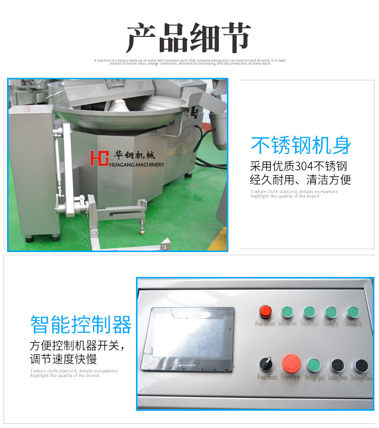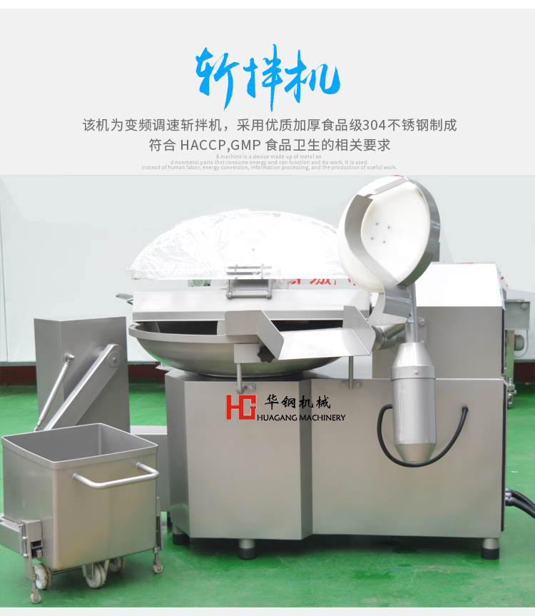 華鋼系列125升高速斬拌機根據客戶產品加工產品的不同,我們也是分為21KW和25KW兩種,高轉速可達到4500轉每分鐘,是細切、乳化各種肉泥肉餡的理想設備.