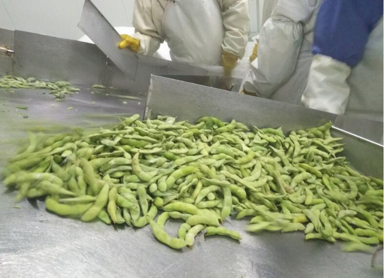 豌豆去殼— 挑選— 清洗 — 漂燙 — 冷卻—瀝水—預冷—速凍—包裝—冷凍