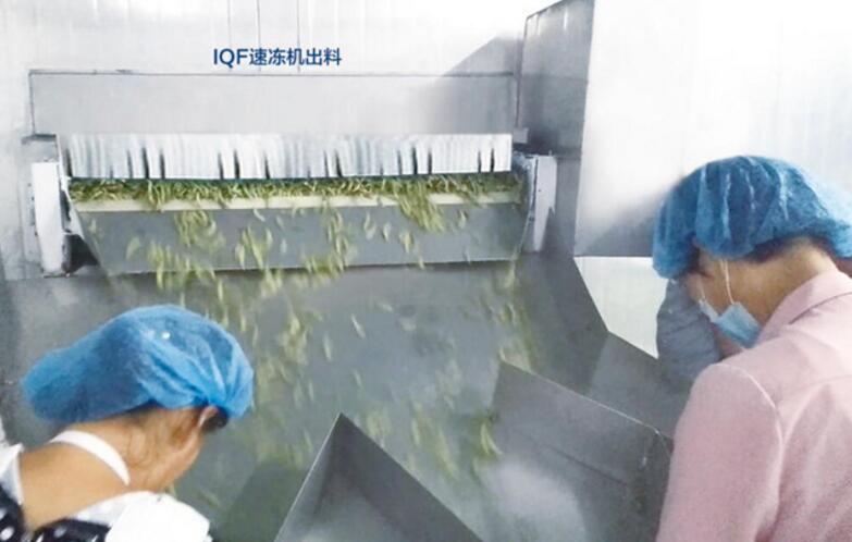 8、速凍:經(jīng)預冷后經(jīng)過速凍機速凍,速凍溫度控制在-36度以下,保證豌豆產(chǎn)品的中心溫度在18分鐘內(nèi)降至-18度以下。
