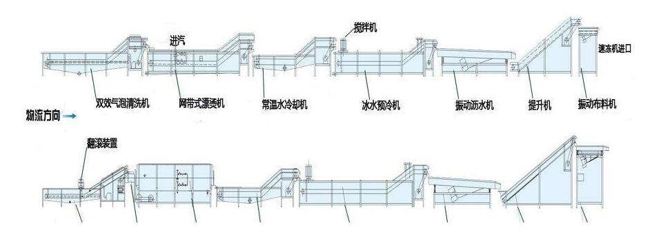 5、常溫水冷:將漂燙后的豌豆輸送到常規(guī)清洗機進行常溫降溫。