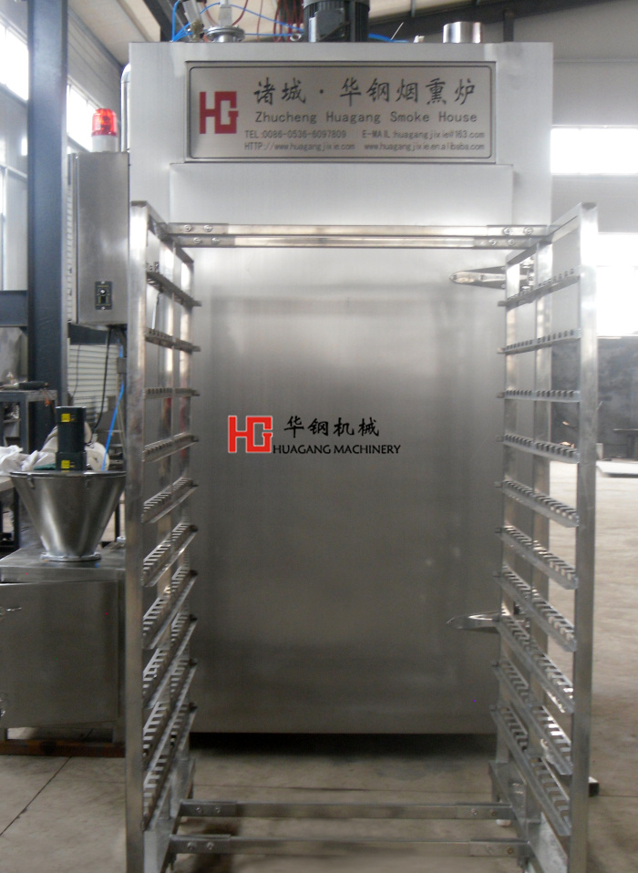 蒸煮爐的型號有YX-30,YX-50,YX-100,YX-150,YX-200,YX-250,YX-500,YX-1000等。蒸煮爐是沒有去掉煙熏功能的煙熏爐,主要是用來烘干和蒸煮香腸的設(shè)備。