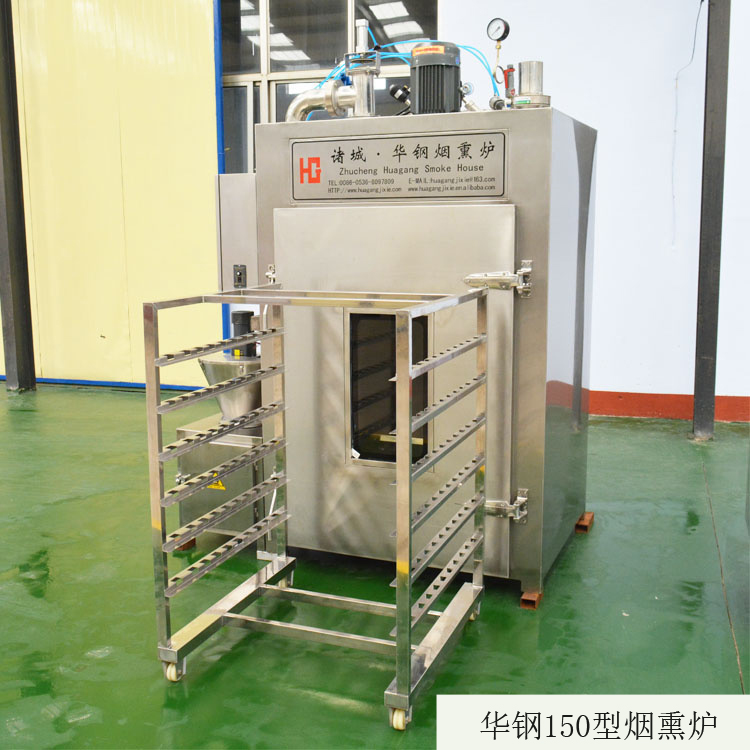 熱熏法溫度為50~85℃,通常在60℃左右,熏制時(shí)間4~6小時(shí),是應(yīng)用較廣泛的一種方法。因?yàn)檠频臏囟容^高,制品在短時(shí)間內(nèi)就能形成較好的煙熏色澤。熏制的溫度必須緩慢上升,不能升溫過急,否則產(chǎn)生發(fā)色不均勻,一般灌腸產(chǎn)品的煙熏采用這種方法。