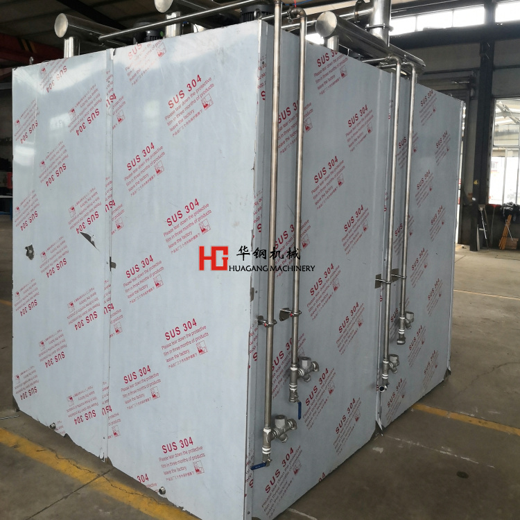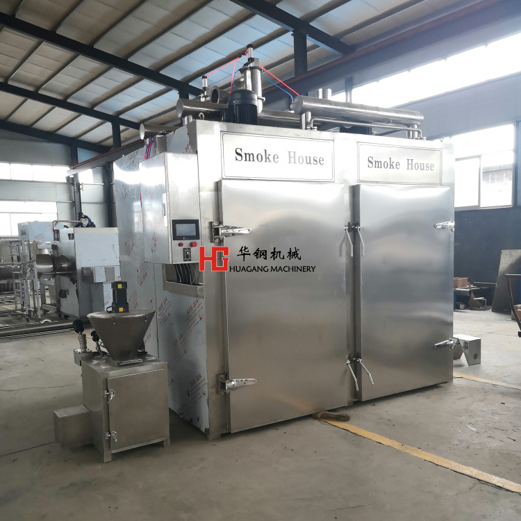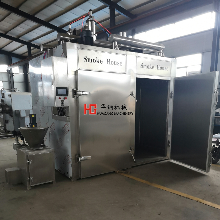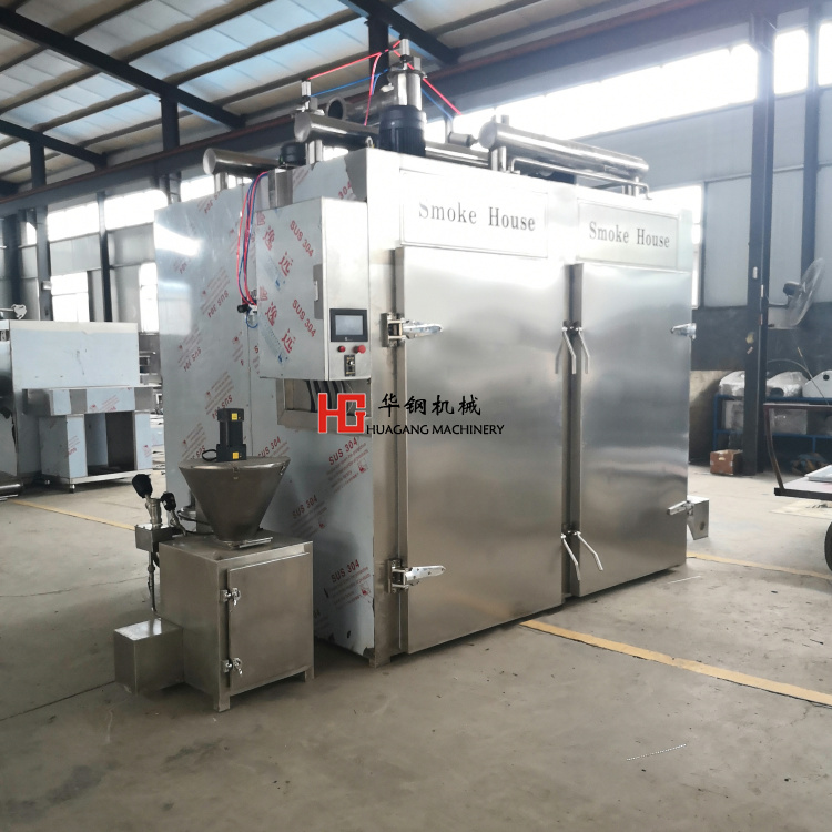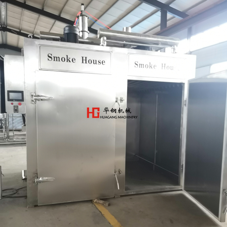 煙熏爐是各種香腸,臘肉,熏雞、烤鴨等肉產(chǎn)品,煙熏豆腐干等不可缺少的設(shè)備之一,具有蒸,烘烤、煙熏、排風(fēng)等功能。根據(jù)客戶的反饋以及市場的需求,經(jīng)過多年的摸索探索研制生產(chǎn),加熱升溫裝置有蒸汽加熱或者電熱管加熱,同時集成了循環(huán)控制,發(fā)煙,烘烤干燥等系統(tǒng),煙熏的過程縮短,提高生產(chǎn)效率;并能控制煙熏料(果木,木屑,稻殼米糠,白砂糖)的量,幫助生產(chǎn)企業(yè)有效控制了成本,對產(chǎn)品進(jìn)行了性能高,設(shè)備更合理的改進(jìn),使其加熱速度、烘干效果、煙熏效果都達(dá)到了理想的效果。從而為用戶提供了更、更可靠、更衛(wèi)生和經(jīng)濟(jì)的選擇。該設(shè)備整體設(shè)計新穎、加工精制,美觀。整體采用不銹鋼制作,采用耐高溫聚氨酯發(fā)泡材料保溫,保溫效果好、升溫快,節(jié)約能源。該設(shè)備的循環(huán)系統(tǒng)采用雙速循環(huán)風(fēng)機(jī),合理的分配進(jìn)風(fēng)、排風(fēng)、補風(fēng)機(jī)構(gòu),大限度優(yōu)化箱體內(nèi)部氣流循環(huán)狀態(tài),確保整個箱體物料加工過程中可控、均勻,達(dá)到了低耗、的產(chǎn)出。而關(guān)于電氣控制方式,該設(shè)備采用可編程控制器及繼電器,電磁閥等關(guān)鍵電氣元件均采用進(jìn)口產(chǎn)品,操作簡便,可自動控制時間,爐內(nèi)溫度。具有優(yōu)異的發(fā)煙及循環(huán)系統(tǒng),可使?fàn)t內(nèi)的煙霧均勻分布,從而使肉制品著色均勻,色澤美觀,保證產(chǎn)品具有較高的出品率。符合國內(nèi)消費者的消費意識和相關(guān)部門對此類產(chǎn)品在食品安全的相關(guān)規(guī)定。