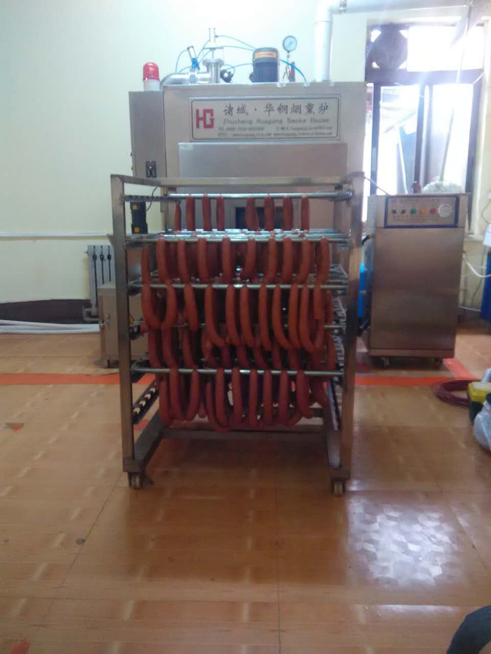 煙熏爐是各種香腸,臘肉,熏雞、烤鴨等肉產(chǎn)品,煙熏豆腐干等不可缺少的設(shè)備之一,具有蒸,烘烤、煙熏、排風(fēng)等功能。根據(jù)客戶的反饋以及市場的需求,經(jīng)過多年的摸索探索研制生產(chǎn),加熱升溫裝置有蒸汽加熱或者電熱管加熱,同時集成了循環(huán)控制,發(fā)煙,烘烤干燥等系統(tǒng),煙熏的過程縮短,提高生產(chǎn)效率;并能控制煙熏料(果木,木屑,稻殼米糠,白砂糖)的量,幫助生產(chǎn)企業(yè)有效控制了成本,對產(chǎn)品進行了性能高,設(shè)備更合理的改進,使其加熱速度、烘干效果、煙熏效果都達到了理想的效果。從而為用戶提供了更、更可靠、更衛(wèi)生和經(jīng)濟的選擇。該設(shè)備整體設(shè)計新穎、加工精制,美觀。整體采用不銹鋼制作,采用耐高溫聚氨酯發(fā)泡材料保溫,保溫效果好、升溫快,節(jié)約能源。該設(shè)備的循環(huán)系統(tǒng)采用雙速循環(huán)風(fēng)機,合理的分配進風(fēng)、排風(fēng)、補風(fēng)機構(gòu),大限度優(yōu)化箱體內(nèi)部氣流循環(huán)狀態(tài),確保整個箱體物料加工過程中可控、均勻,達到了低耗、的產(chǎn)出。而關(guān)于電氣控制方式,該設(shè)備采用可編程控制器及繼電器,電磁閥等關(guān)鍵電氣元件均采用進口產(chǎn)品,操作簡便,可自動控制時間,爐內(nèi)溫度。具有優(yōu)異的發(fā)煙及循環(huán)系統(tǒng),可使?fàn)t內(nèi)的煙霧均勻分布,從而使肉制品著色均勻,色澤美觀,保證產(chǎn)品具有較高的出品率。符合國內(nèi)消費者的消費意識和相關(guān)部門對此類產(chǎn)品在食品安全的相關(guān)規(guī)定。