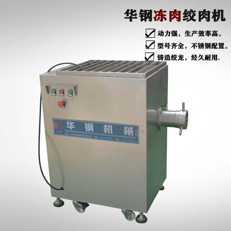 絞肉機的型號有JR-100、JR-120、JR-130,JR-160,JR-200,JR-250,JR-300型等??梢詫⒃霞庸こ筛鞣N不同規(guī)格的顆粒肉餡,絞肉機運行時通過蛟龍的螺旋擠壓,和鉸刀形成剪切力,原料不斷被推出的同時完成肉粒的絞制。主要的結(jié)構(gòu)分為:送料機構(gòu),切割機構(gòu),驅(qū)動機構(gòu)和架體機構(gòu)。