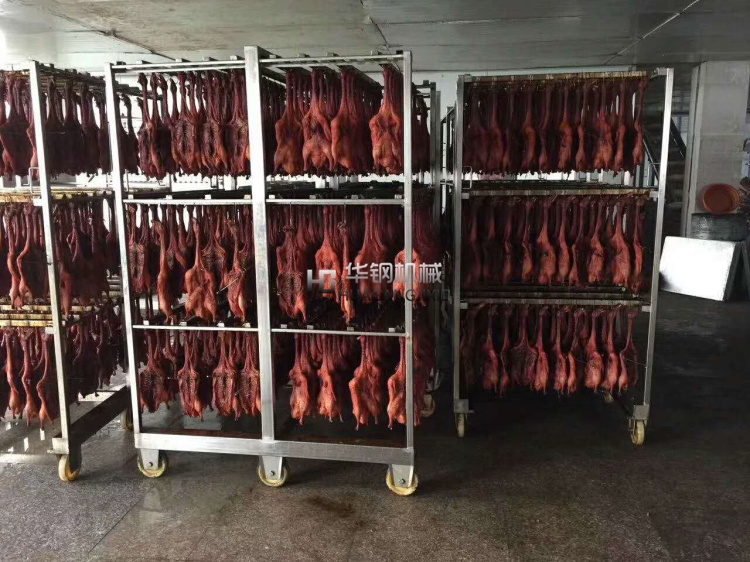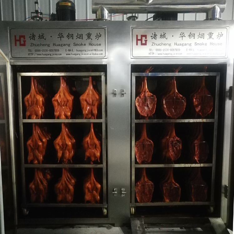 煙熏爐是各種香腸,臘肉,熏雞、烤鴨等肉產(chǎn)品,煙熏豆腐干等不可缺少的設(shè)備之一,具有蒸,烘烤、煙熏、排風等功能。根據(jù)客戶的反饋以及市場的需求,經(jīng)過多年的摸索探索研制生產(chǎn),加熱升溫裝置有蒸汽加熱或者電熱管加熱,同時集成了循環(huán)控制,發(fā)煙,烘烤干燥等系統(tǒng),煙熏的過程縮短,提高生產(chǎn)效率;并能控制煙熏料(果木,木屑,稻殼米糠,白砂糖)的量,幫助生產(chǎn)企業(yè)有效控制了成本,對產(chǎn)品進行了性能高,設(shè)備更合理的改進,使其加熱速度、烘干效果、煙熏效果都達到了理想的效果。從而為用戶提供了更可靠、更衛(wèi)生和經(jīng)濟的選擇。該設(shè)備整體設(shè)計新穎、加工精制,美觀。整體采用不銹鋼制作,采用耐高溫聚氨酯發(fā)泡材料保溫,保溫效果好、升溫快,節(jié)約能源。該設(shè)備的循環(huán)系統(tǒng)采用雙速循環(huán)風機,合理的分配進風、排風、補風機構(gòu),大限度優(yōu)化箱體內(nèi)部氣流循環(huán)狀態(tài),確保整個箱體物料加工過程中可控、均勻,達到了低耗、快速的產(chǎn)出。而關(guān)于電氣控制方式,該設(shè)備采用可編程控制器及繼電器,電磁閥等關(guān)鍵電氣元件均采用進口產(chǎn)品,操作簡便,可自動控制時間,爐內(nèi)溫度。具有優(yōu)異的發(fā)煙及循環(huán)系統(tǒng),可使爐內(nèi)的煙霧均勻分布,從而使肉制品著色均勻,色澤美觀,保證產(chǎn)品具有較高的出品率。符合國內(nèi)消費者的消費意識和相關(guān)部門對此類產(chǎn)品在食品安全的相關(guān)規(guī)定。醬板鴨煙熏爐