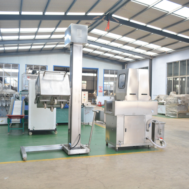 整機(jī)采用不銹鋼材質(zhì),分為移動(dòng)式和固定式兩種機(jī)型,T200型提升機(jī)是專為200L標(biāo)準(zhǔn)肉車配套的提升設(shè)備, 其功能是將物料提升到一定高度后,傾倒至設(shè)備的料斗中,以完成加料工作。該機(jī)采用全不銹鋼材料制造,鏈條傳動(dòng),便于清洗,美觀耐用。。具有運(yùn)行平穩(wěn)、安全可靠、易于清潔、操作方便等優(yōu)點(diǎn),采用進(jìn)口雙行程開關(guān)控制。工藝技術(shù).