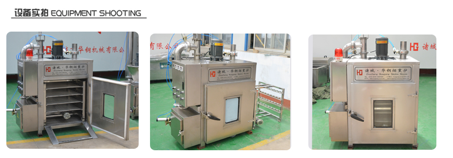 主機采用SUS304不銹鋼材質.符合食品級要求! 該煙熏爐設備發(fā)煙裝置為外置發(fā)煙,在爐外側發(fā)煙箱內直接放置