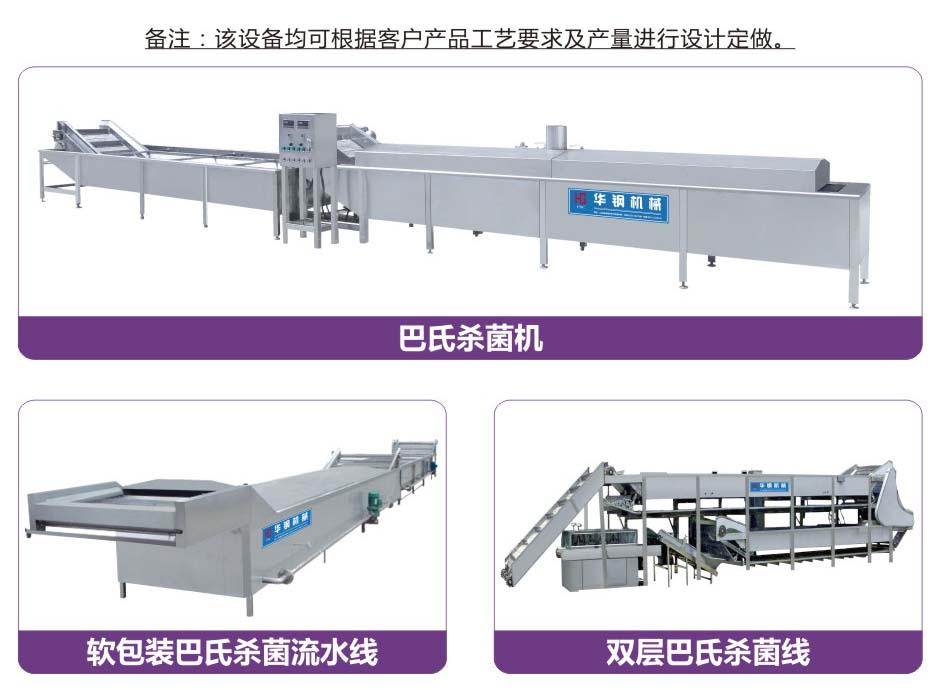 本機系列適用于蔬菜殺表、脫水蔬菜、腌漬菜、低溫肉制品、奶制品等食品的滅菌。滅菌溫度、速度可根據(jù)工藝要求設定。