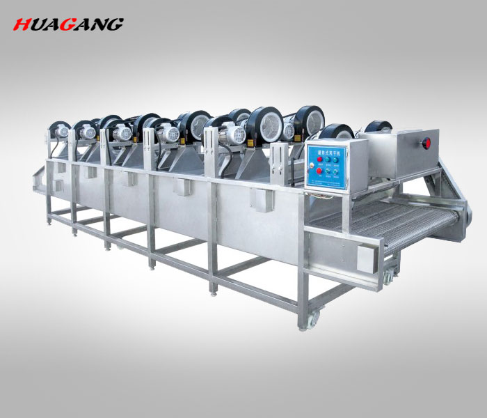 軟包裝風(fēng)干機適用于滅菌后的高低溫肉制品、蔬菜制品等軟包裝產(chǎn)品滅菌后的除水工作,亦適用于蔬菜清洗后表面水的去除。通過多次翻身瀝水,及上部高壓強冷風(fēng)吹,使軟包裝完全達到表面水珠吹干的效果(袋面皺紋間的存水也能干)。此設(shè)備與殺菌機相連并速度同步,每臺風(fēng)機功率:0.75KW,設(shè)備環(huán)保節(jié)能。