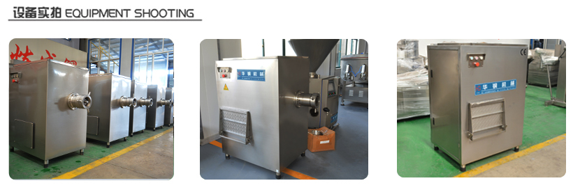 凍肉絞肉機(jī)是肉制品生產(chǎn)行業(yè)中通用性高、使用范圍廣的一種肉食加工設(shè)備。它是依靠螺桿將料斗箱中的原料肉推到預(yù)切板處,通過螺桿的旋轉(zhuǎn)擠壓使孔板與絞刀產(chǎn)生相對質(zhì)運(yùn)轉(zhuǎn),從而將原料肉切成顆粒形狀,確保了肉餡的均勻性。通過孔板的不同組合可達(dá)到理想的要求的不同肉餡。