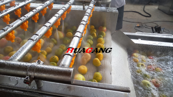 本設(shè)備是針對(duì)柑橘原料的特點(diǎn)專門設(shè)計(jì)研發(fā)而成,主體分四個(gè)清洗步驟: